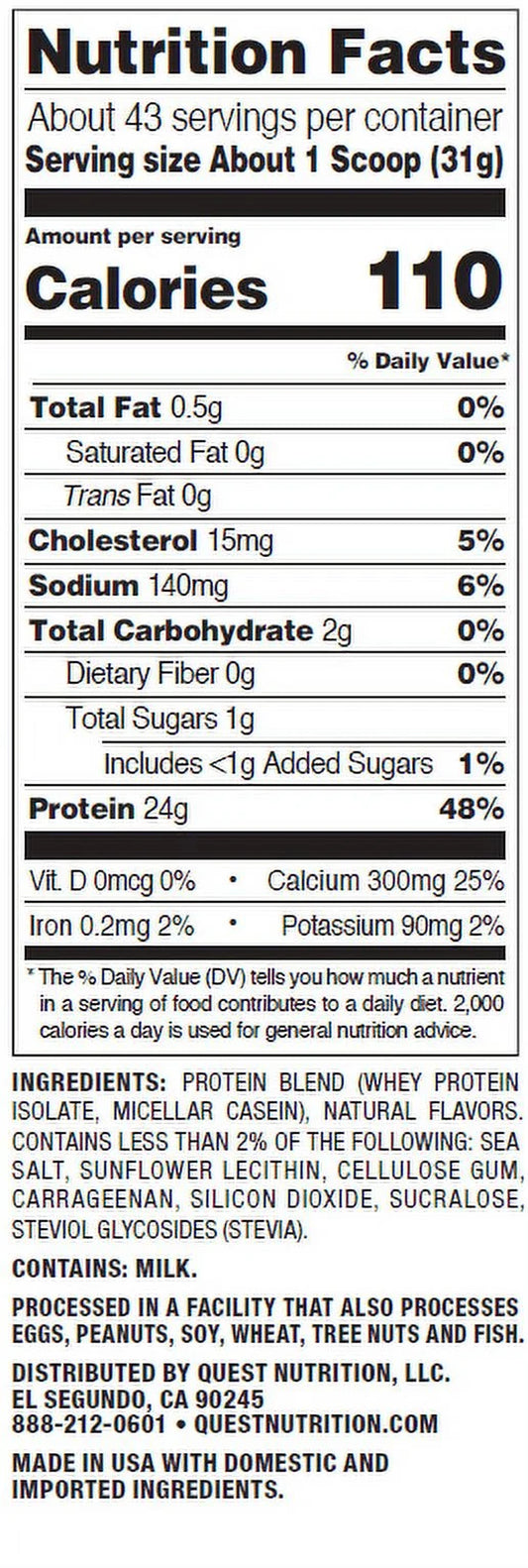Quest Protein Powder, Vanilla Milkshake, 24G Protein, 3Lb, 48Oz